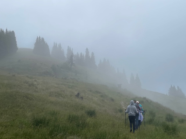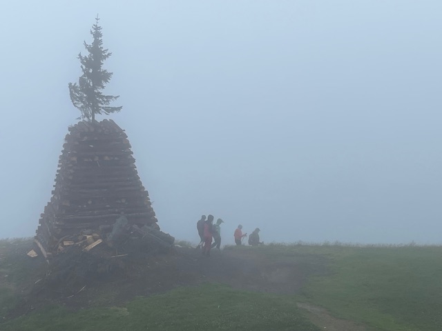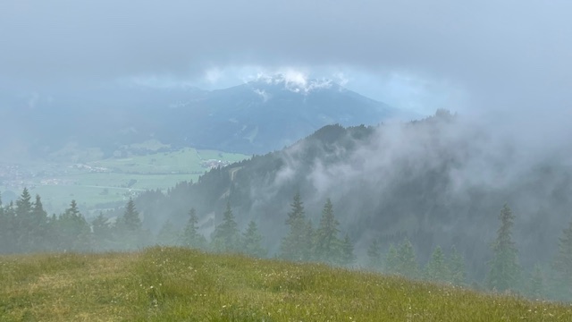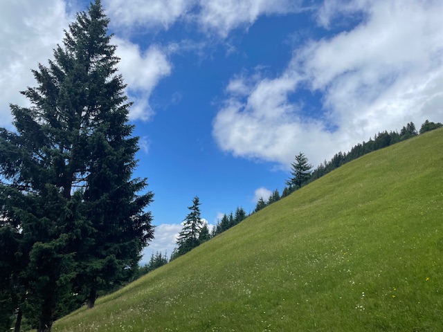 In Schöder, nur eine Autofahrminuten von Murau entfernt, parken wir und machen uns auf den 10 km langen Rundwanderweg zum Grünster Wasserfall, mit seinen 65 Metern der zweithöchste der Steiermark. Oberhalb der Talstraße folgen wir der Beschilderung, vorbei am Hang liegenden Höfen, die allseits offensichtlich frischen Nachwichts bei den Schafen, Ziegen, Pferden und Kühen bekommen haben. Wir entscheiden uns, zum Wasserfall von oben zuzusteigen. Leider erfahren wir erst am Einstieg zum Pfad, dass der Weg ab hier aufgrund von Schäden am Weg gesperrt ist und wir einen weitern Bogen mit vielen Höhenmetern zurück müssen, um doch noch den Wasserfall besuchen zu können. Deshalb entscheiden wir uns, zurück nicht die ursprüngliche Route für den Rückweg oberhalb des Hinweges zu nehmen und folgen der Talstraße zurück nach Schöder. Da diese wenig befahrenen ist, kommen wir so schneller und sicher zurück zum Parkplatz. Die im Laufe unserer Wanderung aufgezogenen, z.T. dunkeln Wolken halten aber dicht und wir kommen trocken an. Am Ende stehen dann ca. 12 km Wegdistanz mit je ca. 440 Höhenmetern bergauf und bergab auf der Uhr. Mit einem Stück Kuchen und einer Pause im einem Cafe auf der Rückfahrt beschließen wir diesen Ausflug.
