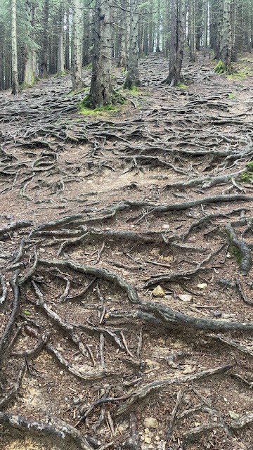 Von Murau kommend starten wir unsere Wanderung am Parkplatz in der Vorstadt vor dem Ortseingang nach Sankt Lambrecht. Die Asphaltstraße der Unteralpe verlassen wir nach wenigen Kilometern in einer Steilkurve und biegen in den Feldweg ein, der uns nach einigen Metern direkt in den Wald führt. Die Route ist gut ausgeschildert. Wir gewinnen schnell an Höhe, während wir über meistens über Wurzeln steigen oder auf weichem Waldoden laufen. Der Forststraße müssen wir meist nur wenige Meter folgen, um wieder in den Wald abbiegen zu können.