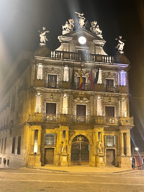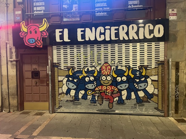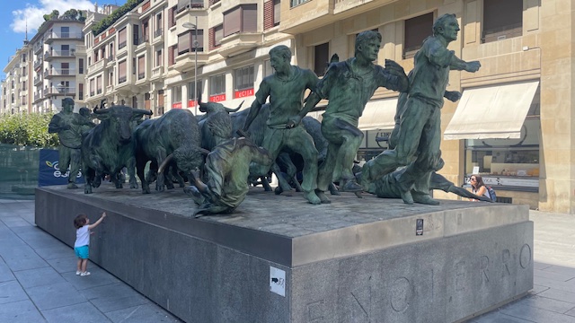 Von der Ciudadela de Pamplona aus der Renaissance, in der sich heute der Parcque de la Vualta del Castello befindet, gehen wir über die moderne Einkaufsstraße zur Stierkampfarena an der Plaza de Toros, die das Ziel der 825 m langen jährlichen Stierläufe ist. Der Ursprung dieses Brauches liegt in einem während des 10-tägigen, zu Ehren des Stadtpatrons Firmin der Ältere von Amirns veranstalteten Patronatsfestes (spanisch: Sanfermines) abgehaltenen Viehmarktes: Stehenbleiben oder Rückwärtslaufen ist dabei nicht erlaubt, während die Läufer sichtlich den Stieren die Straße teilen. Seit 1924 wurden dabei 15 Menschen getötet. Der 24-jährige Ernest Hemingway hat sich in seiner Schaffenszeit 1923 als Auslandskorrespondent hier aufgehalten und war nachhaltig beeindruckt: „I will never be able to do more than Pamplona has done for me“. Es sollte nicht sein letzter Besuch in der Stadt bleiben.