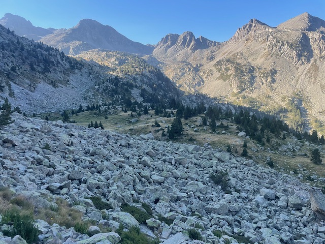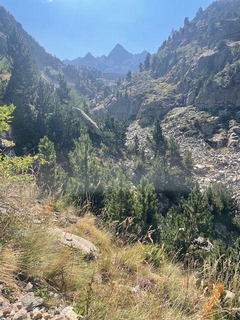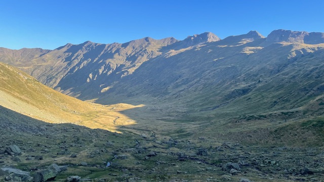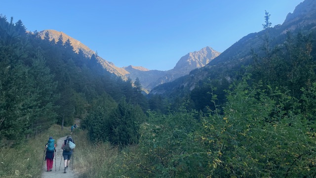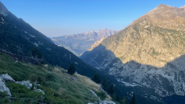 Erst dann geht es in die Pyrenäen, wo wir in 9 Tage ca. 165 km mit einen Höhenunterschied von ca. 14.500 m wandern und einem Ruhetag zur Halbzeit einlegen. Dieses Gebirge erlaubt uns deutlich weniger Einstiege und aufgrund geringer Dichte bewirtschafteter Hütten und anderer Übernachtungsmöglichkeiten als in den Alpen auch weniger Flexibilität bei der Routenplanung entlang des Fernwanderwegs GR 11 in dem spanischen Teil der Pyrenäen, für den wir uns entschieden haben.