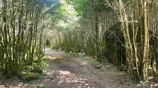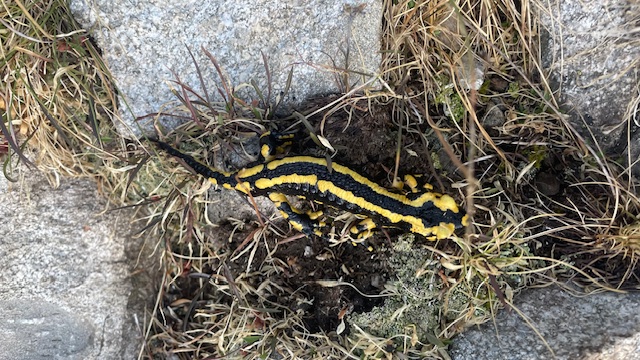 7:07 Uhr: Wir alle überschreiten gleichzeitig die Startlinie, die den Beginn unserer gemeinsamen Wanderung einläutet. Gleich nach unserem Campingplatz biegen wir nach rechts ab und folgen der Straße aus Betonplatten bis diese in einen mit Gräser und Hecken zuwuchernden Trampelpfad im Wald übergeht. Die Erfahrung, dass es den einen in unseren Karten eingezeichneten Weg überhaupt nicht gibt, kostet uns einige Kilometer extra Laufstrecke. Belohnt werden wir dennoch mit einem abwechslungsreichen Aufstieg zur eigentlichen GR 11-Route.